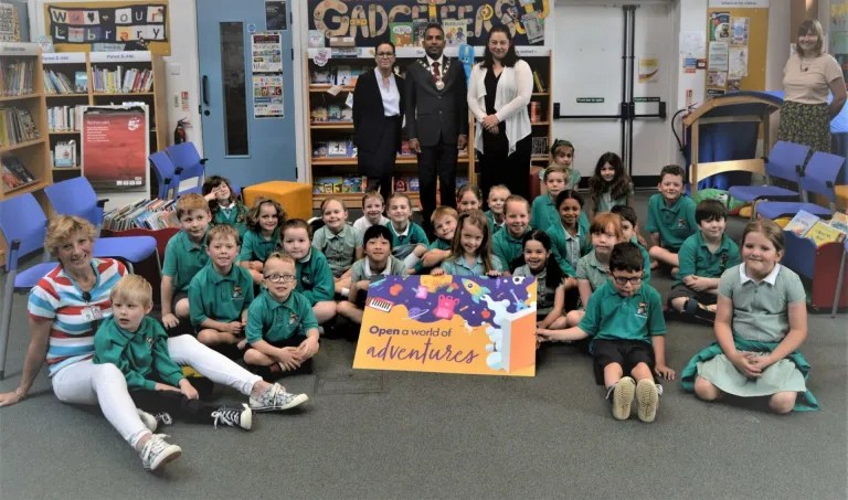 South Gloucestershire 시의회 의장, Sanjay Shambhu 시의원 및 학교 및 지역사회 내각 의원, Erica Williams 및 Rachael Hunt 시의원은 이번 주 Emersons Green Library에서 Emersons Green Primary School의 학생 및 교직원과 함께 새로운 계획을 축하하고 도서관에서 제공되는 모든 기회을 탐구했습니다.